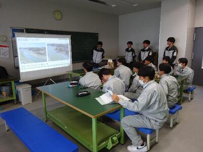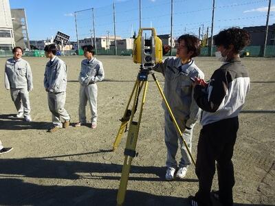 ○丸本組の本校土木システム科卒業生による出前授業を、課題研究の時間で、講義並びに技術指導を実施していただいた。そのことにより、現在の建設業界の動向と今後の建設技術の展望について、最新の工事測量技術について学ぶことができた。