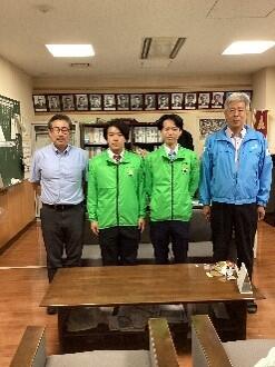 校長室へ表敬訪問 (左から平子教頭、関口君、菅原君、大髙校長) |