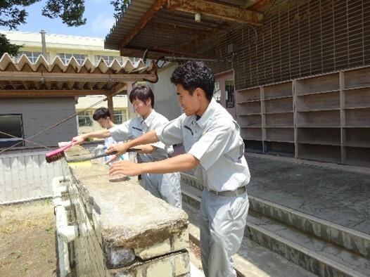 〇土木システム科三年生の地域貢献班は、課題研究の時間を使い、貞山小学校さんにお伺いし、体育館前の水飲み場の天板設置作業を行いました。