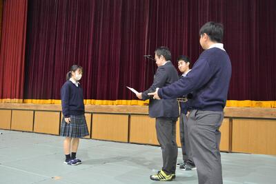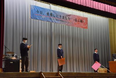 2月28日(金)本校講堂で3年生の表彰式及び予餞会を行いました。