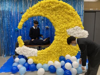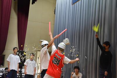 初日(17日)は,体育館での校内発表を行いました。軽音楽部や保健委員会による演奏・発表のほか,「クラスギネスチャレンジコンテスト」や「足つぼ紙風船チャンバラ大会」,有志発表などが行われ,終始活気に満ちた一日となりました。