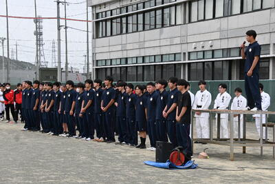 地区総体壮行式は本校グラウンドで行いました。各運動部が決意表明を行い、応援団激励で熱意のある大きな声がグラウンドに響き渡っていました。各運動部が大会で良い結果を残すことを祈っております。